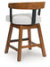 Details Made with solid wood frame, Burnished dark brown finish, Foam cushion with polyester upholstery, Swivel seat with self-return feature keeps your space looking neat and tidy, Footrest for added support, Assembly required