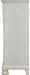 Elegant, timeless furnishings take your bedroom to the next level. Nothing does that better than this chest of drawers. The antiqued white finish with a wonderful grain texture radiates sophistication, while dark bronze-tone knobs add an ornate touch. Felt finishing in the upper drawers rounds out this tasteful piece.