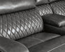 City sleek living. This sectional is loaded with luxury. An ultra-stylish diamond stitch design pumps up the piece with eye-catching drama. And talk about style with purpose. This sectional supports you with a high back and faux leather upholstery in gorgeous gray. Its USB charging station powers up your tech life as you recline in comfort. Cheers to the stainless steel cup holders, too.