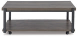 | Details | Includes coffee table and 2 end tables, Made with MDF substrate, decorative paper laminate and metal, Laminate features a replicated wood grain with a weathered gray coloration, Metal frame with gunmetal powder coat finish, Open storage shelf, Coffee table with casters for easy mobility, Assembly required | |
